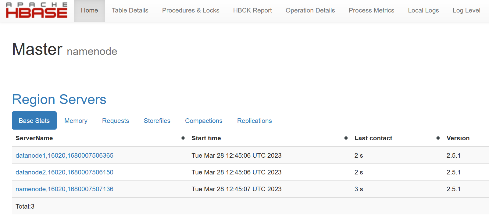 现在你可以尝试访问 HBase 面板 查看 HBase 状态了。